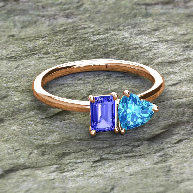 Simple and beautiful, this enchanting 2 Stone Duo Ring flaunting an Emerald Shape Tanzanite dazzling along with Heart Shape Blue Topaz are perfect for the women who have a modern outlook and are willing to be unique.