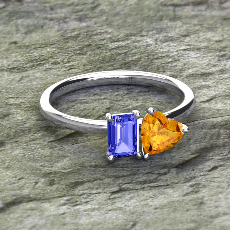 Simple and beautiful, this enchanting 2 Stone Duo Ring flaunting an Emerald Shape Tanzanite dazzling along with Heart Shape Citrine are perfect for the women who have a modern outlook and are willing to be unique.