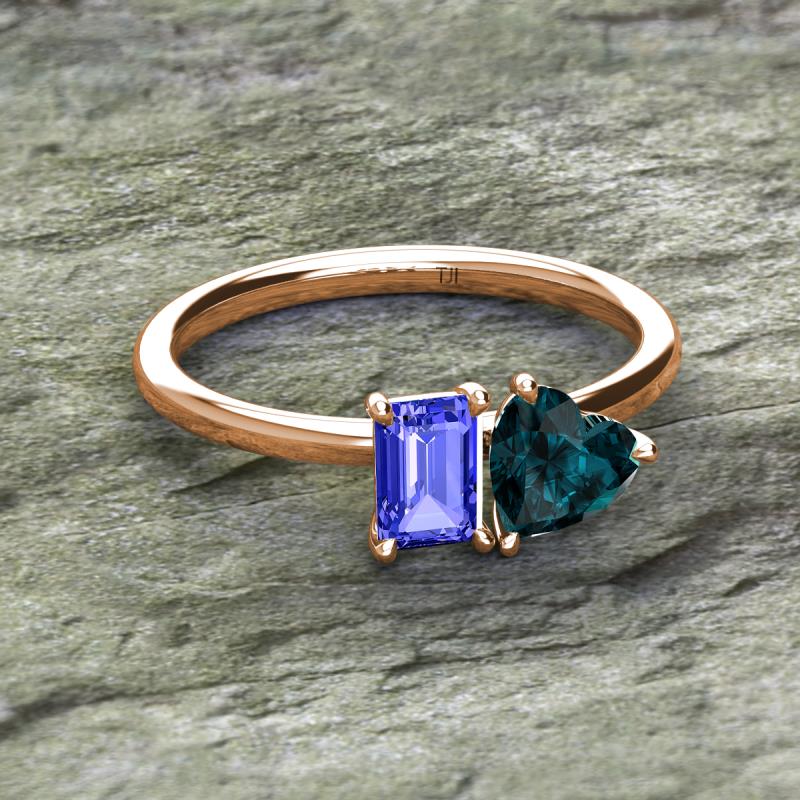 Emerald Shape Tanzanite & Heart Shape London Blue Topaz 2.00 ctw Four Prong Womens 2 Stone Duo Engagement Ring 18K Rose Gold More Details ...