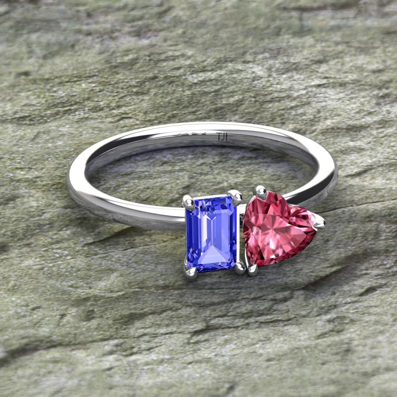 Emerald Shape Tanzanite & Heart Shape Pink Tourmaline 1.80 ctw Four Prong Womens 2 Stone Duo Engagement Ring 14K White Gold More Details ...
