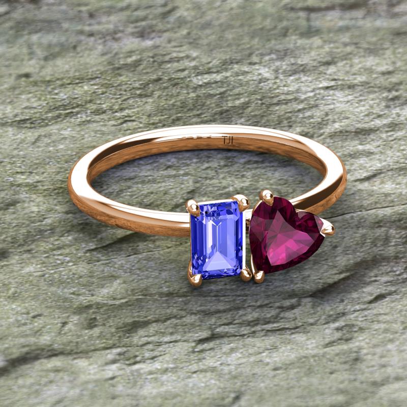 Emerald Shape Tanzanite & Heart Shape Rhodolite Garnet 2.10 ctw Four Prong Womens 2 Stone Duo Engagement Ring 14K Rose Gold More Details ...