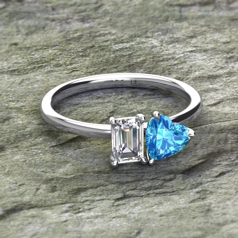 GIA Certified Emerald Shape Diamond & Heart Shape Blue Topaz 2.00 ctw Four Prong Womens 2 Stone Duo Engagement Ring 18K White Gold More Details ...