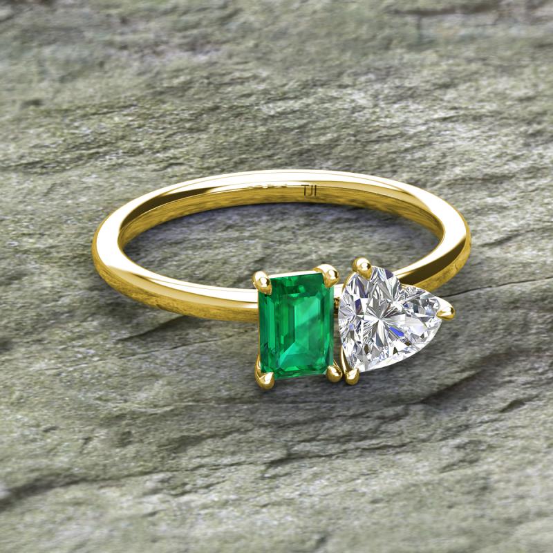 GIA Certified Heart Shape Diamond & Emerald Shape Lab Created Emerald 1.80 ctw Four Prong Womens 2 Stone Duo Engagement Ring 10K Yellow Gold More Details ...