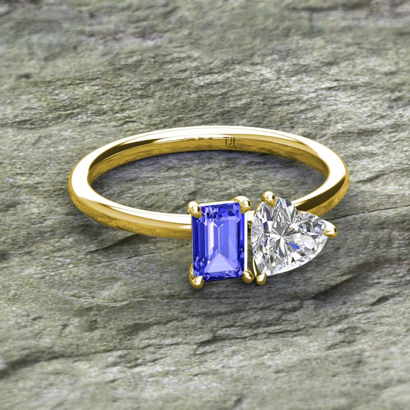 GIA Certified Heart Shape Diamond & Emerald Shape Tanzanite 1.85 ctw Four Prong Womens 2 Stone Duo Engagement Ring 14K Yellow Gold More Details ...