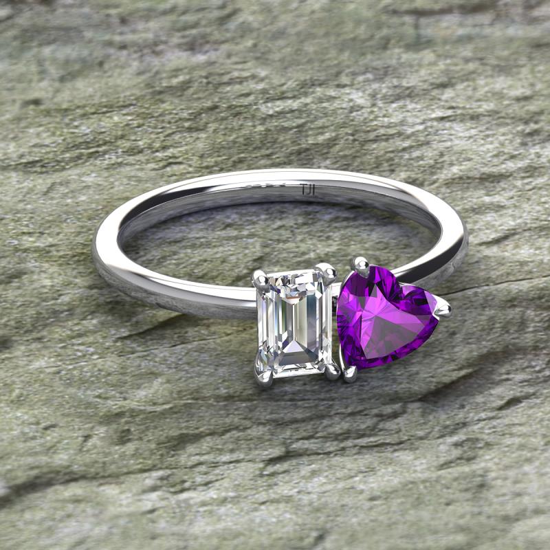 IGI Certified Emerald Shape Lab Grown Diamond & Heart Shape Amethyst 1.68 ctw Four Prong Womens 2 Stone Duo Engagement Ring Platinum More Details ...