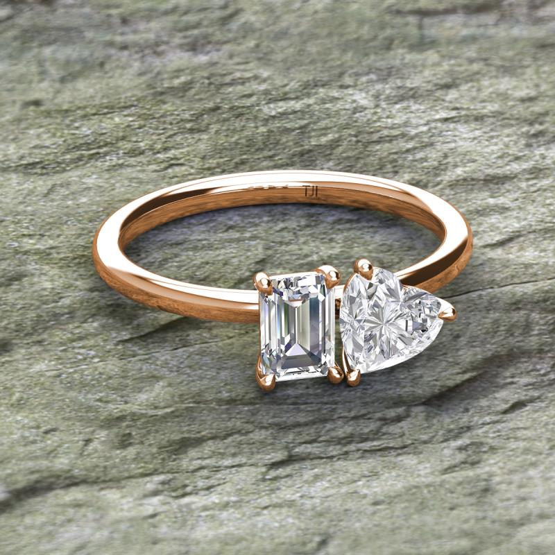 Simple and beautiful, this enchanting 2 Stone Duo Ring flaunting an IGI Certified Emerald Shape Lab Grown Diamond dazzling along with Heart Shape Lab Created White Sapphire are perfect for the women who have a modern outlook and are willing to be unique.