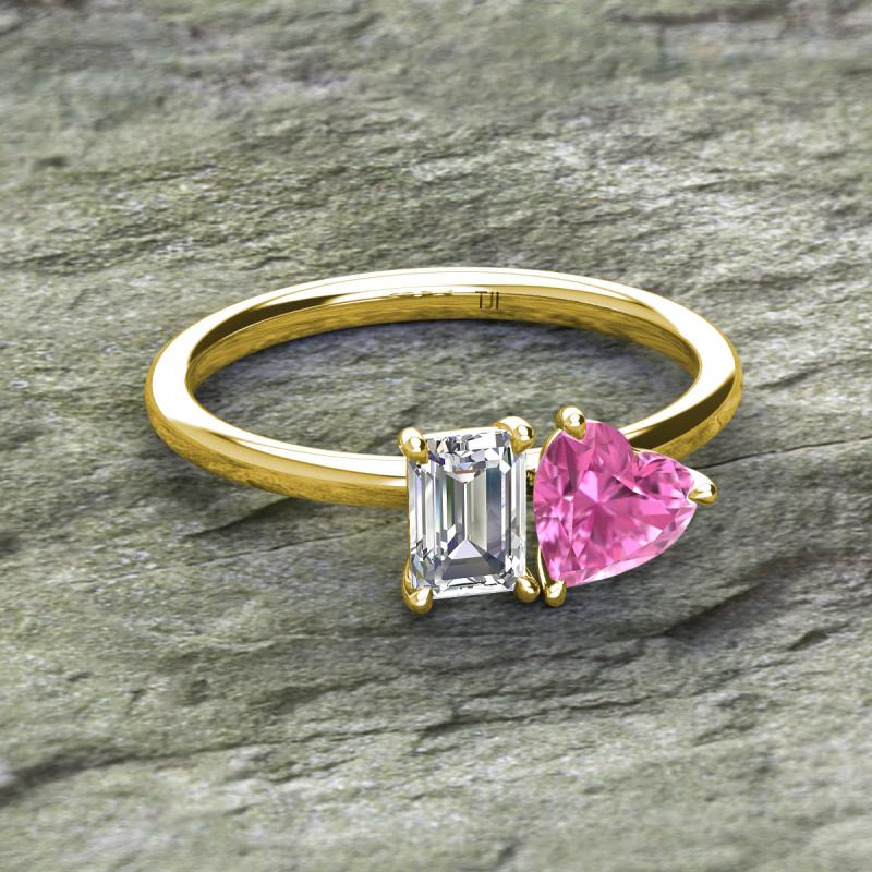 IGI Certified Emerald Shape Lab Grown Diamond & Heart Shape Pink Sapphire 2.00 ctw Four Prong Womens 2 Stone Duo Engagement Ring 18K Yellow Gold More Details ...