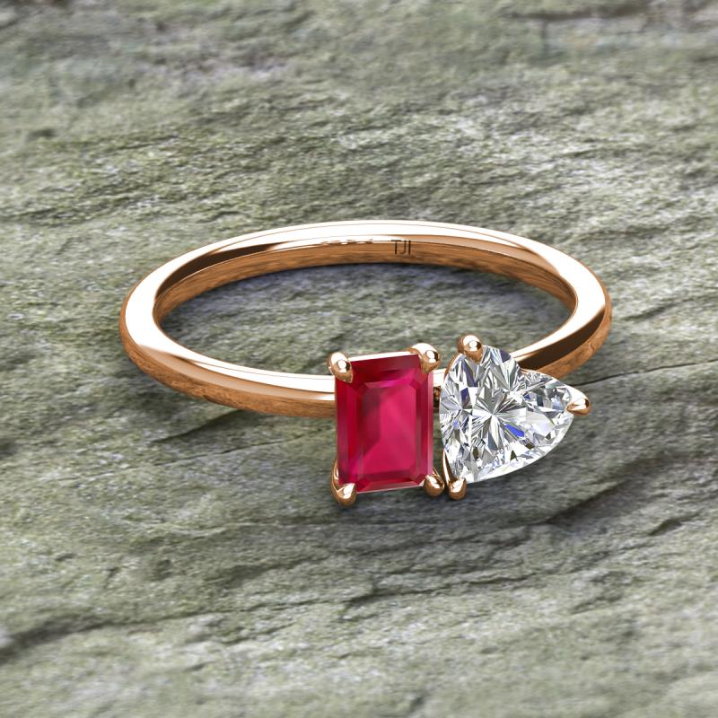 IGI Certified Heart Shape Lab Grown Diamond & Emerald Shape Lab Created Ruby 2.15 ctw Four Prong Womens 2 Stone Duo Engagement Ring 18K Rose Gold More Details ...