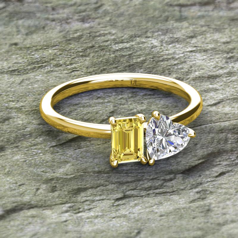 Simple and beautiful, this enchanting 2 Stone Duo Ring flaunting an Emerald Shape Lab Created Yellow Sapphire dazzling along with IGI Certified Heart Shape Lab Grown Diamond are perfect for the women who have a modern outlook and are willing to be unique.