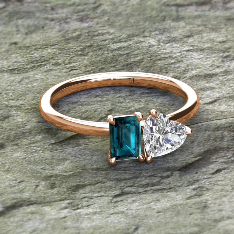 IGI Certified Heart Shape Lab Grown Diamond & Emerald Shape London Blue Topaz 2.05 ctw Four Prong Womens 2 Stone Duo Engagement Ring 14K Rose Gold More Details ...