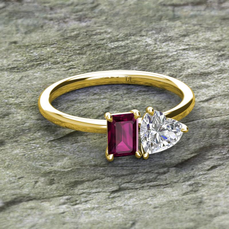 IGI Certified Heart Shape Lab Grown Diamond & Emerald Shape Rhodolite Garnet 2.05 ctw Four Prong Womens 2 Stone Duo Engagement Ring 14K Yellow Gold More Details ...