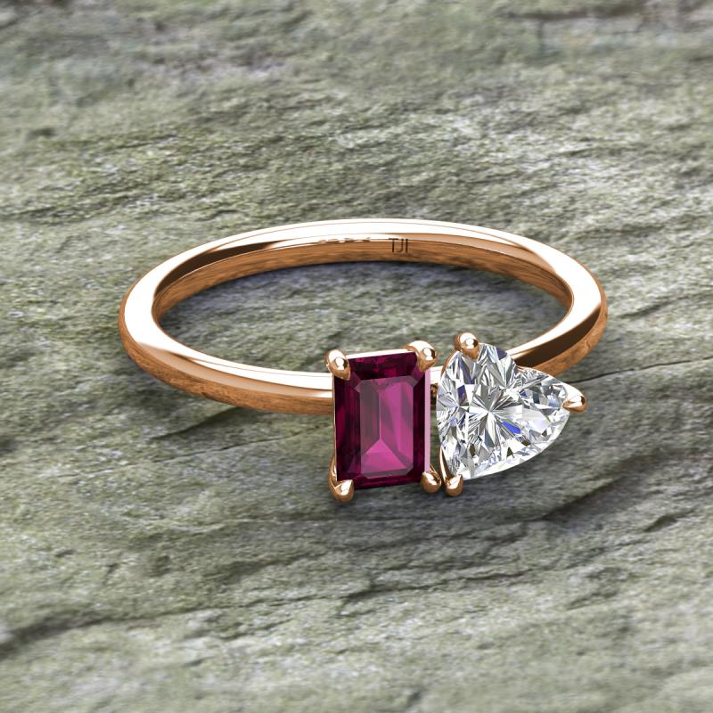 IGI Certified Heart Shape Lab Grown Diamond & Emerald Shape Rhodolite Garnet 2.05 ctw Four Prong Womens 2 Stone Duo Engagement Ring 10K Rose Gold More Details ...