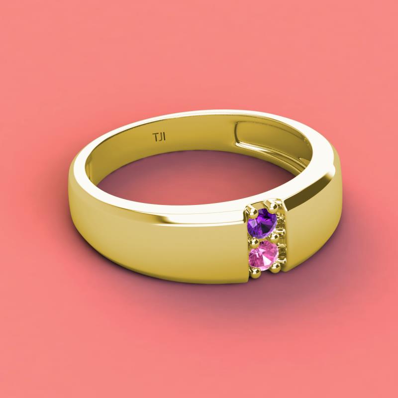 Round Amethyst and Pink Sapphire 0.25 ctw High Polished 2 Stone Men Wedding Band 10K Yellow Gold More Details ...