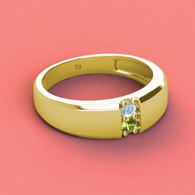 Round Aquamarine and Peridot 0.20 ctw High Polished 2 Stone Men Wedding Band 10K Yellow Gold More Details ...