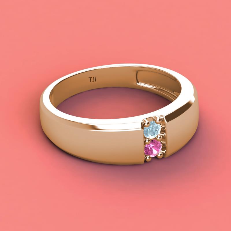 Round Aquamarine and Pink Sapphire 0.25 ctw High Polished 2 Stone Men Wedding Band 10K Rose Gold More Details ...