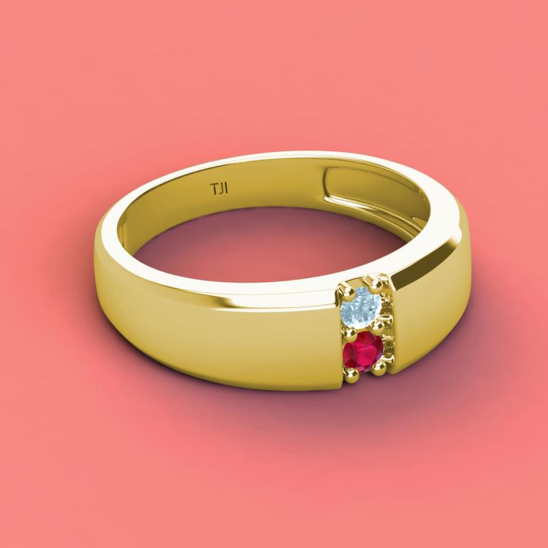 Round Aquamarine and Ruby 0.19 ctw High Polished 2 Stone Men Wedding Band 14K Yellow Gold More Details ...