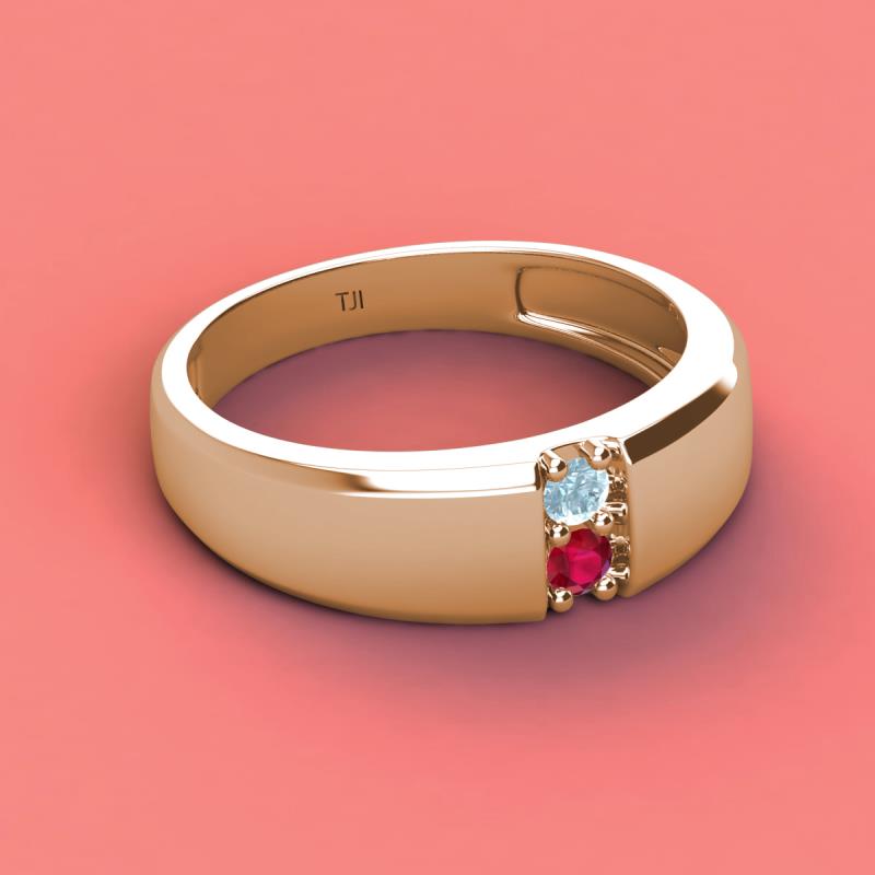 Round Aquamarine and Ruby 0.19 ctw High Polished 2 Stone Men Wedding Band 10K Rose Gold More Details ...