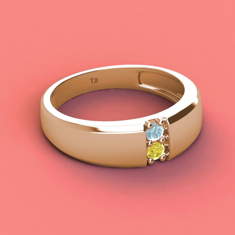 Round Aquamarine and Yellow Diamond 0.18 ctw High Polished 2 Stone Men Wedding Band 14K Rose Gold More Details ...