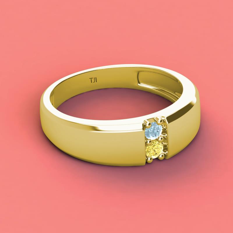 Round Aquamarine and Yellow Sapphire 0.25 ctw High Polished 2 Stone Men Wedding Band 10K Yellow Gold More Details ...