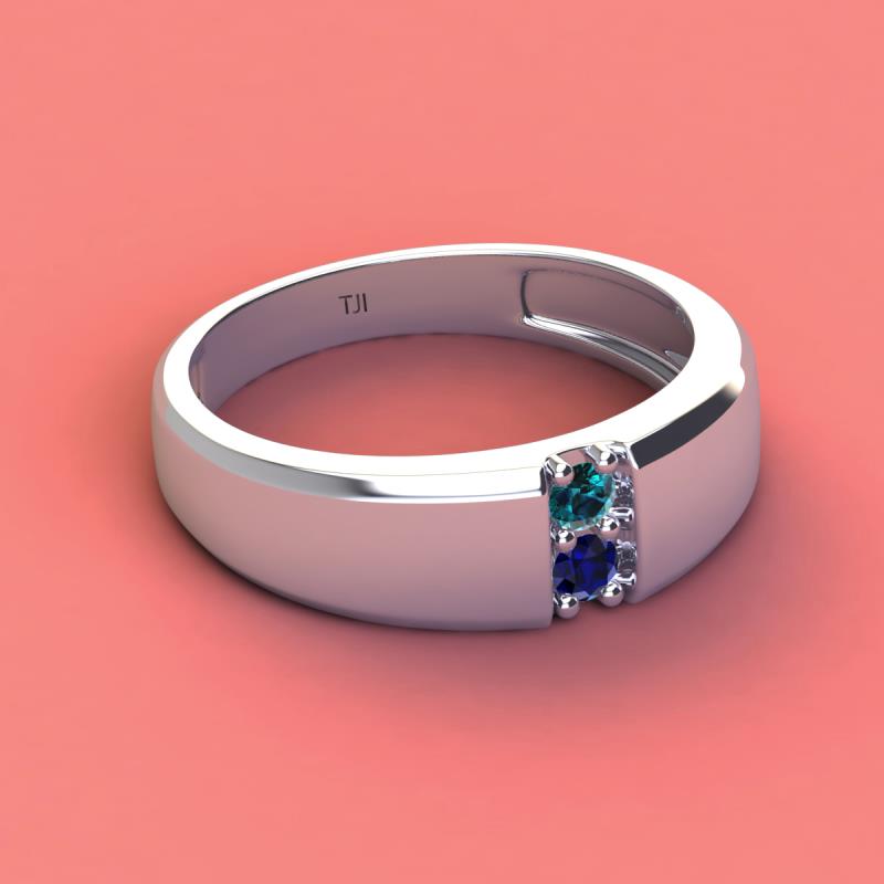 Round Blue Diamond and Blue Sapphire 0.21 ctw High Polished 2 Stone Men Wedding Band 10K White Gold More Details ...