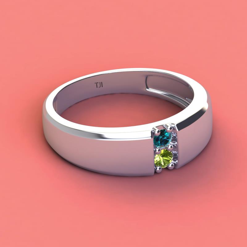 Round Blue Diamond and Peridot 0.22 ctw High Polished 2 Stone Men Wedding Band 10K White Gold More Details ...