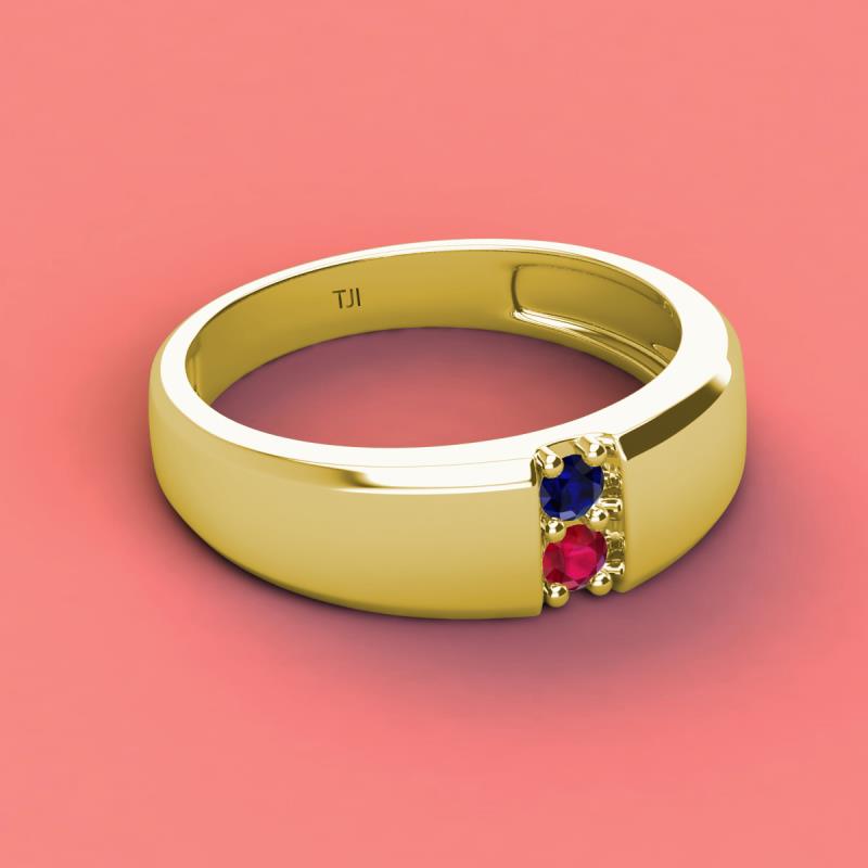 Round Blue Sapphire and Ruby 0.21 ctw High Polished 2 Stone Men Wedding Band 18K Yellow Gold More Details ...