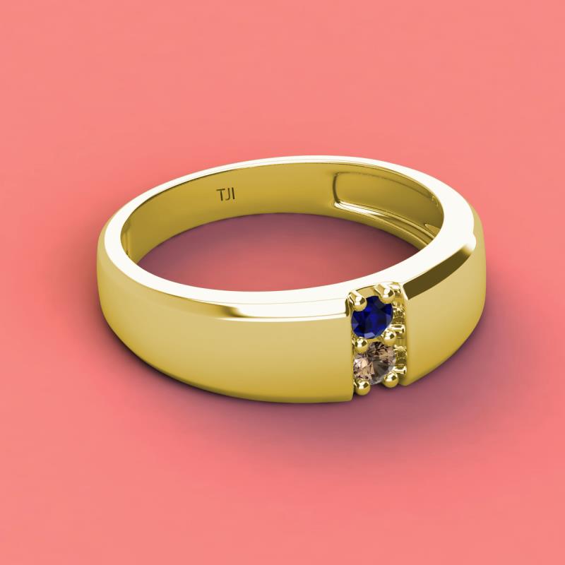 Round Blue Sapphire and Smoky Quartz 0.21 ctw High Polished 2 Stone Men Wedding Band 18K Yellow Gold More Details ...