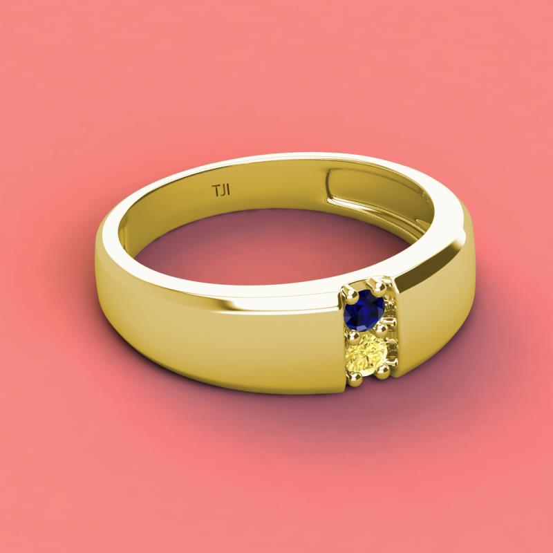 Round Blue Sapphire and Yellow Sapphire 0.28 ctw High Polished 2 Stone Men Wedding Band 10K Yellow Gold More Details ...