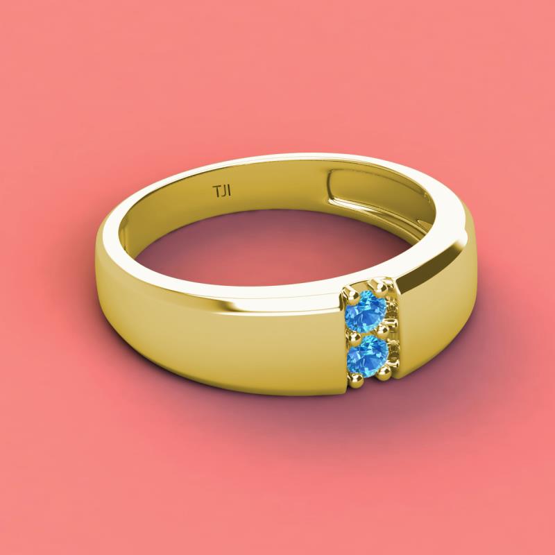 Round Blue Topaz 0.18 ctw High Polished 2 Stone Men Wedding Band 10K Yellow Gold More Details ...