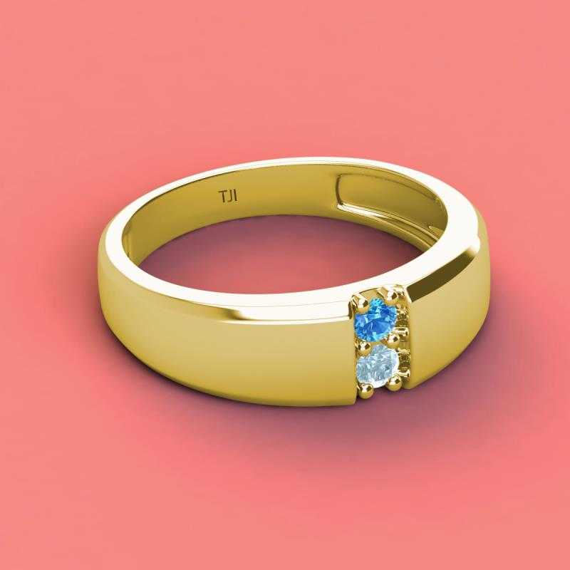 Round Blue Topaz and Aquamarine 0.17 ctw High Polished 2 Stone Men Wedding Band 18K Yellow Gold More Details ...