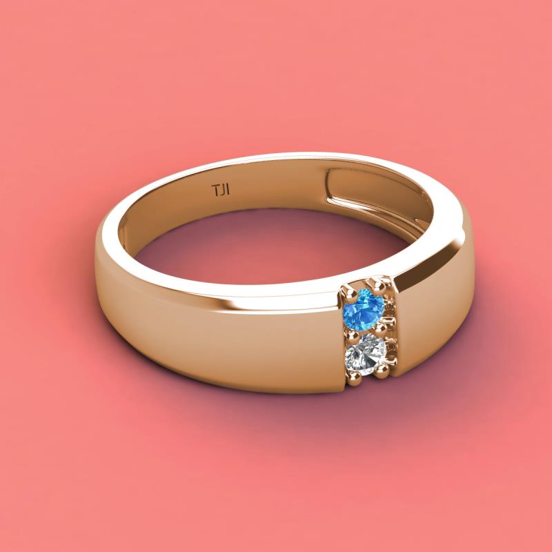 Round Blue Topaz and Forever One Moissanite 0.18 ctw High Polished 2 Stone Men Wedding Band 18K Rose Gold More Details ...