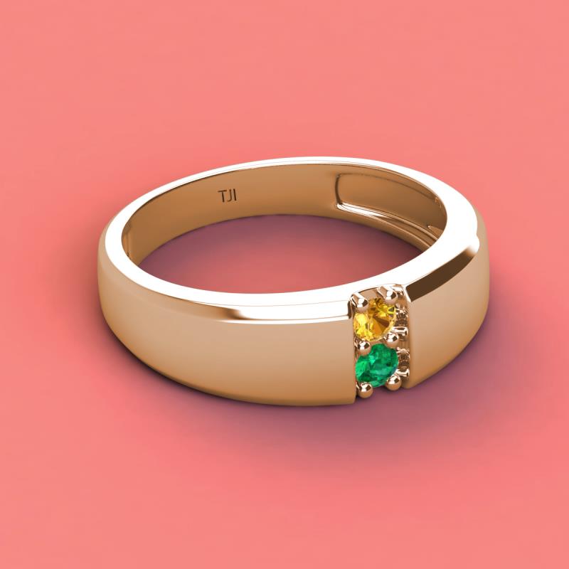 Round Citrine and Emerald 0.16 ctw High Polished 2 Stone Men Wedding Band 10K Rose Gold More Details ...