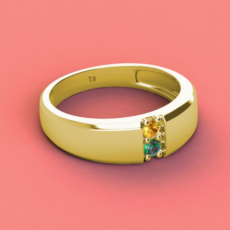 Round Citrine and Lab Created Alexandrite 0.20 ctw High Polished 2 Stone Men Wedding Band 14K Yellow Gold More Details ...