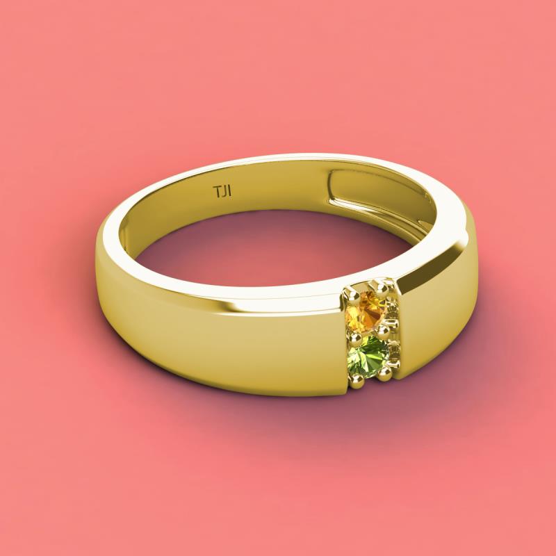 Round Citrine and Peridot 0.20 ctw High Polished 2 Stone Men Wedding Band 10K Yellow Gold More Details ...