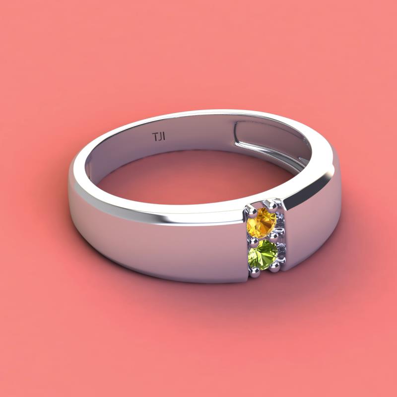 Round Citrine and Peridot 0.20 ctw High Polished 2 Stone Men Wedding Band 10K White Gold More Details ...