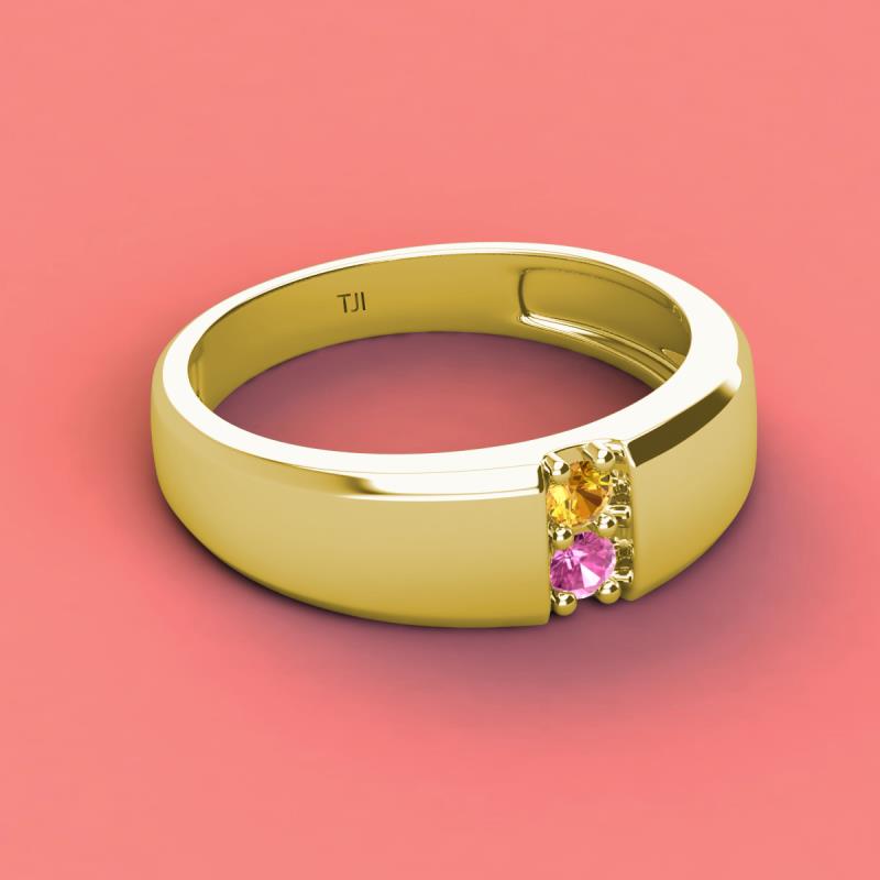 Round Citrine and Pink Sapphire 0.25 ctw High Polished 2 Stone Men Wedding Band 14K Yellow Gold More Details ...