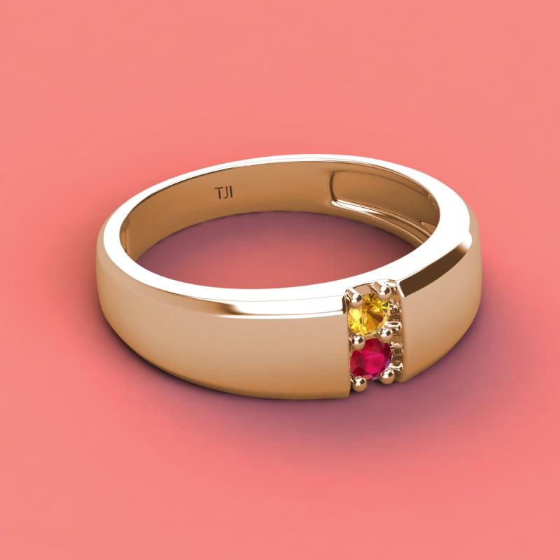 Round Citrine and Ruby 0.19 ctw High Polished 2 Stone Men Wedding Band 14K Rose Gold More Details ...