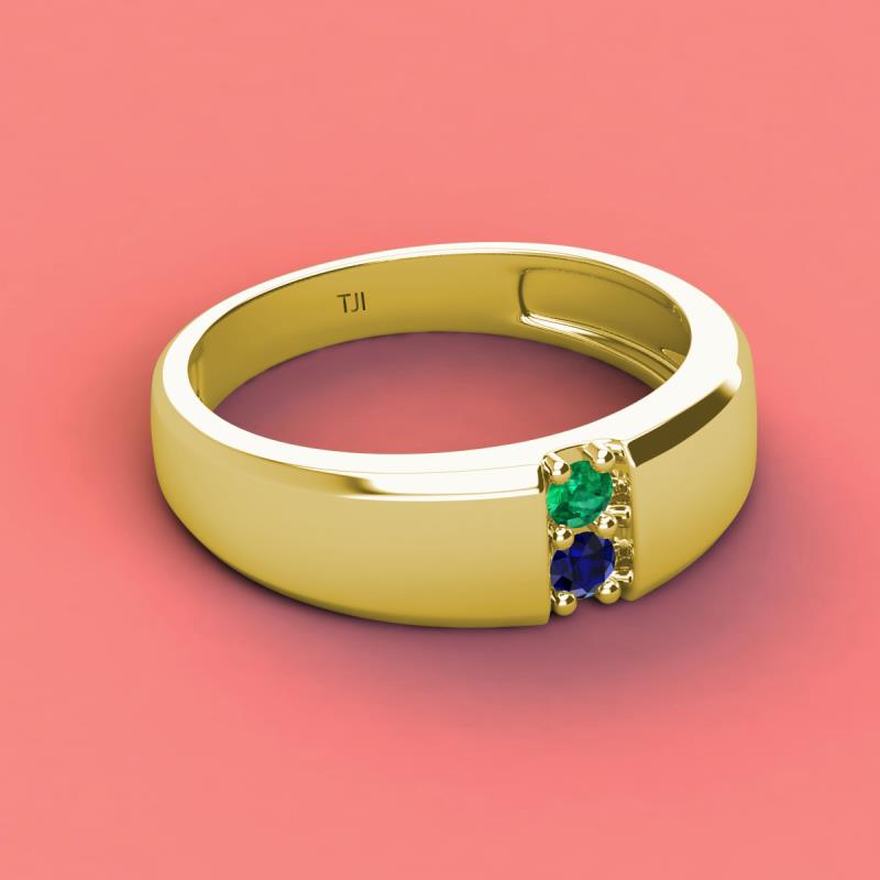 Round Emerald and Blue Sapphire 0.22 ctw High Polished 2 Stone Men Wedding Band 14K Yellow Gold More Details ...