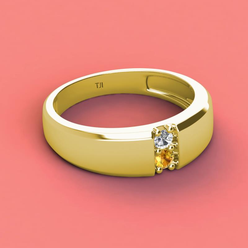 Round Forever Brilliant Moissanite and Citrine 0.17 ctw High Polished 2 Stone Men Wedding Band 14K Yellow Gold More Details ...