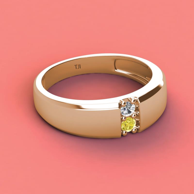 Round Forever Brilliant Moissanite and Yellow Diamond 0.19 ctw High Polished 2 Stone Men Wedding Band 14K Rose Gold More Details ...