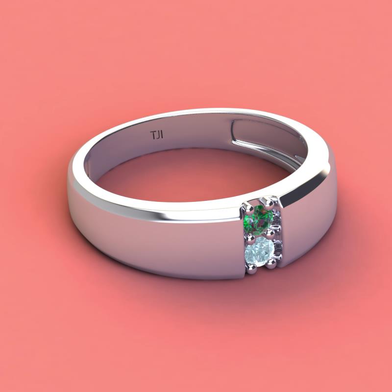 Round Lab Created Alexandrite and Aquamarine 0.20 ctw High Polished 2 Stone Men Wedding Band 14K White Gold More Details ...