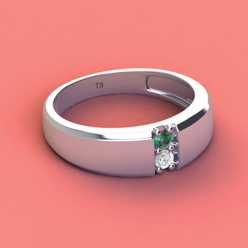 Round Lab Created Alexandrite and White Sapphire 0.29 ctw High Polished 2 Stone Men Wedding Band Platinum More Details ...