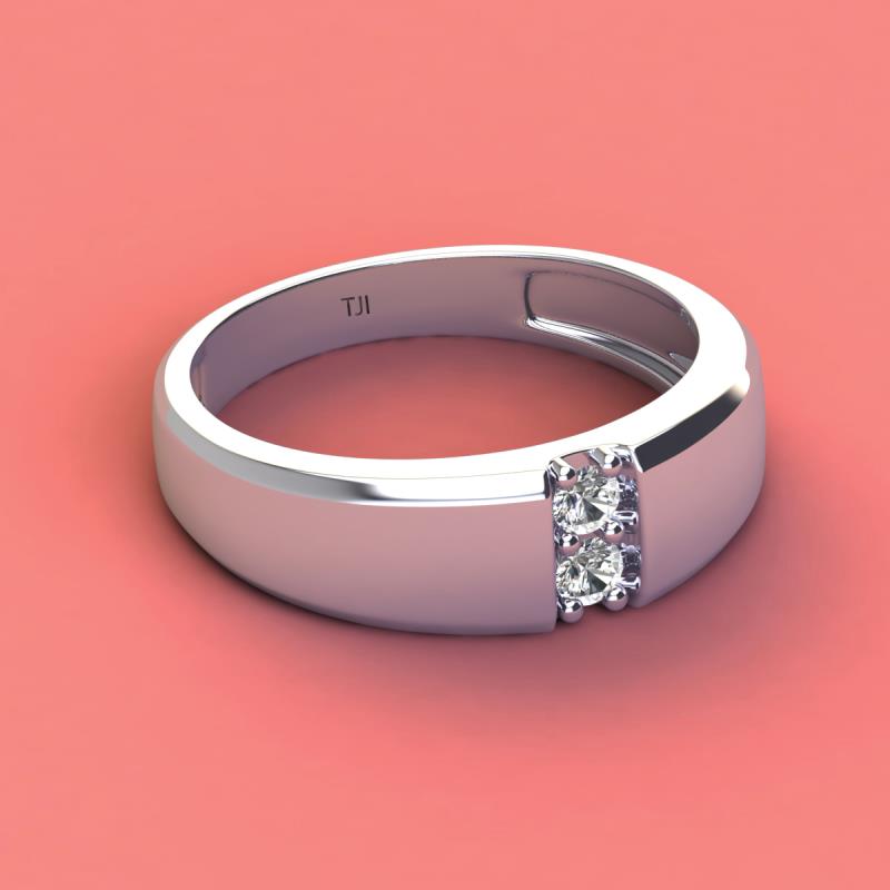 Round Lab Grown Diamond and Natural Diamond 0.20 ctw High Polished 2 Stone Men Wedding Band 10K White Gold More Details ...