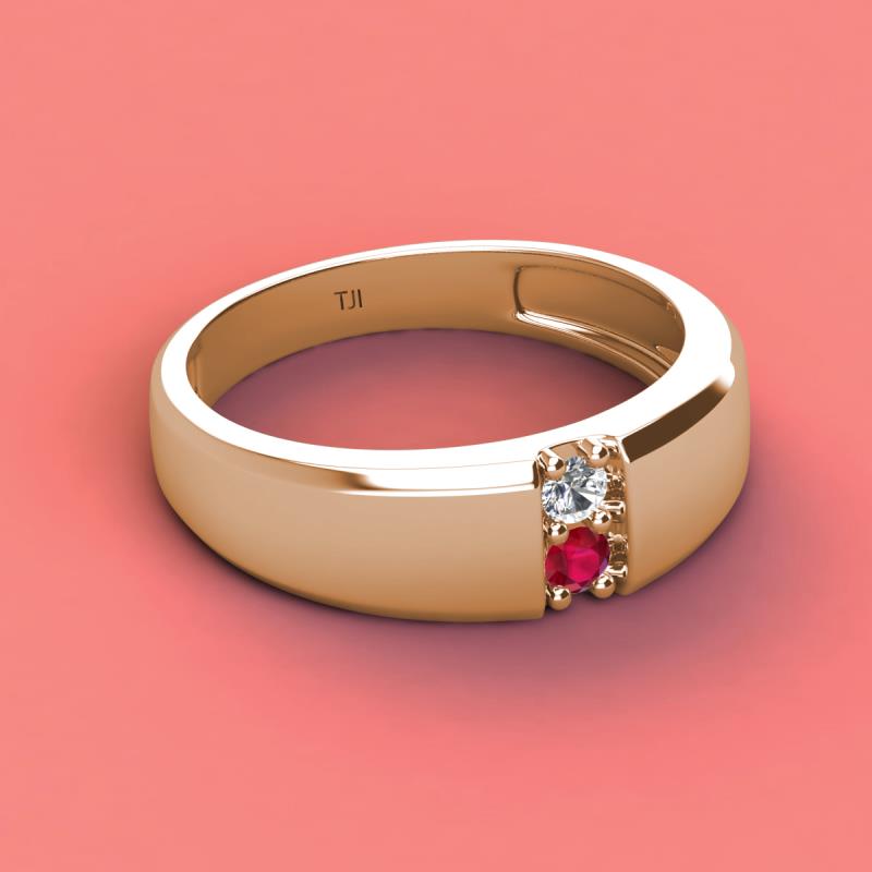 Round Lab Grown Diamond and Ruby 0.21 ctw High Polished 2 Stone Men Wedding Band 10K Rose Gold More Details ...