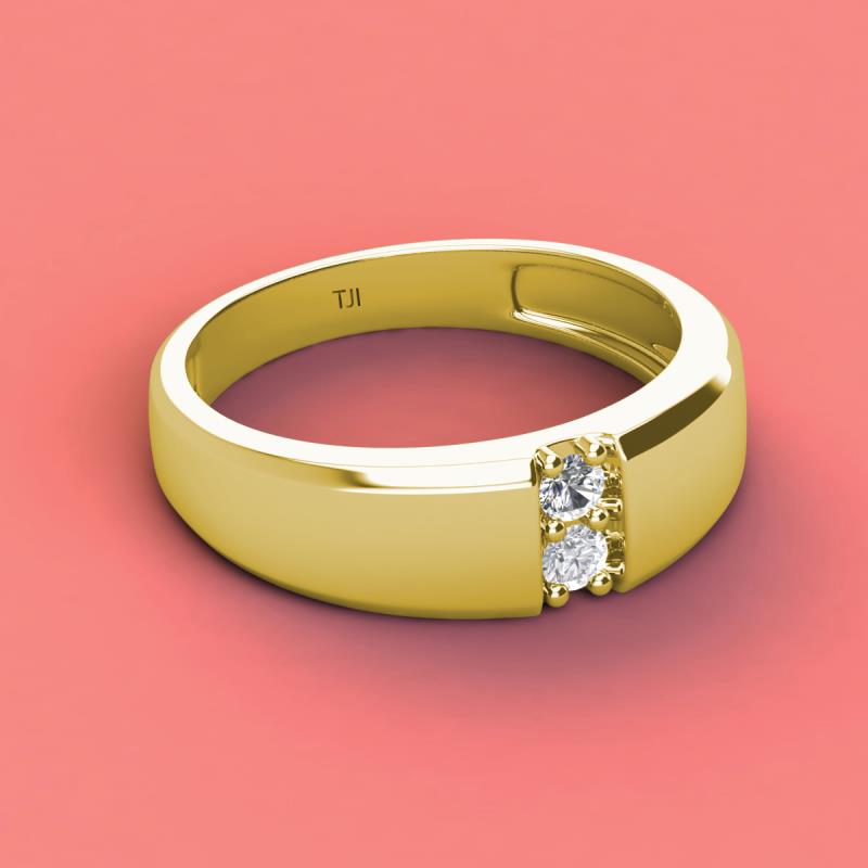 Round Lab Grown Diamond and White Sapphire 0.27 ctw High Polished 2 Stone Men Wedding Band 10K Yellow Gold More Details ...