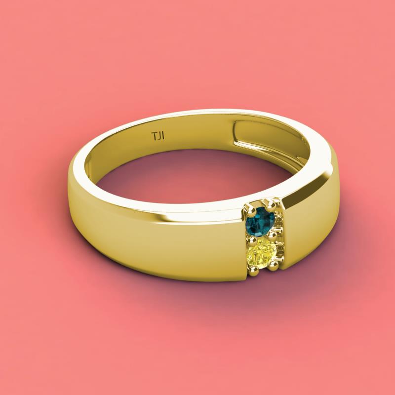 Round London Blue Topaz and Yellow Diamond 0.21 ctw High Polished 2 Stone Men Wedding Band 18K Yellow Gold More Details ...