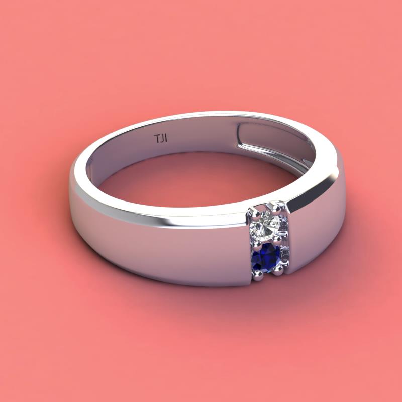Round Natural Diamond and Blue Sapphire 0.21 ctw High Polished 2 Stone Men Wedding Band Platinum More Details ...