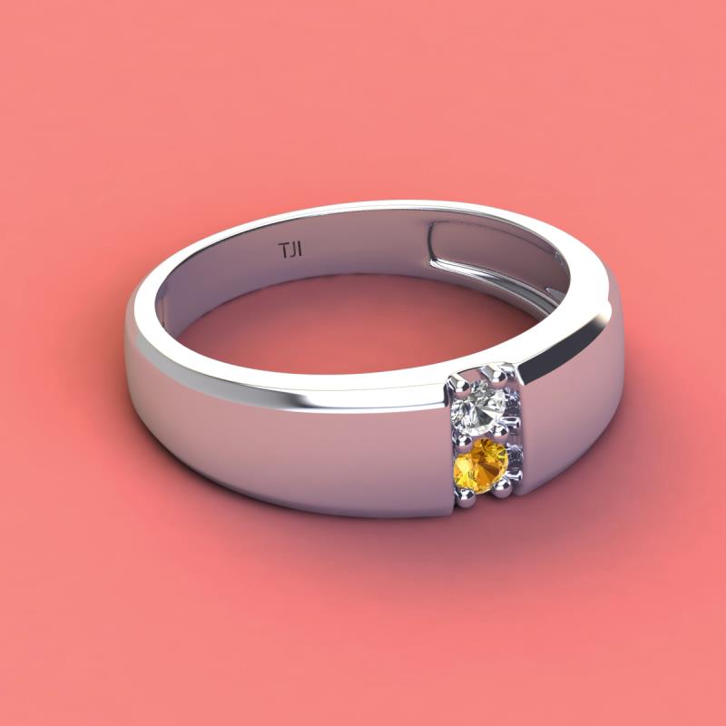 Round Natural Diamond and Citrine 0.18 ctw High Polished 2 Stone Men Wedding Band Platinum More Details ...