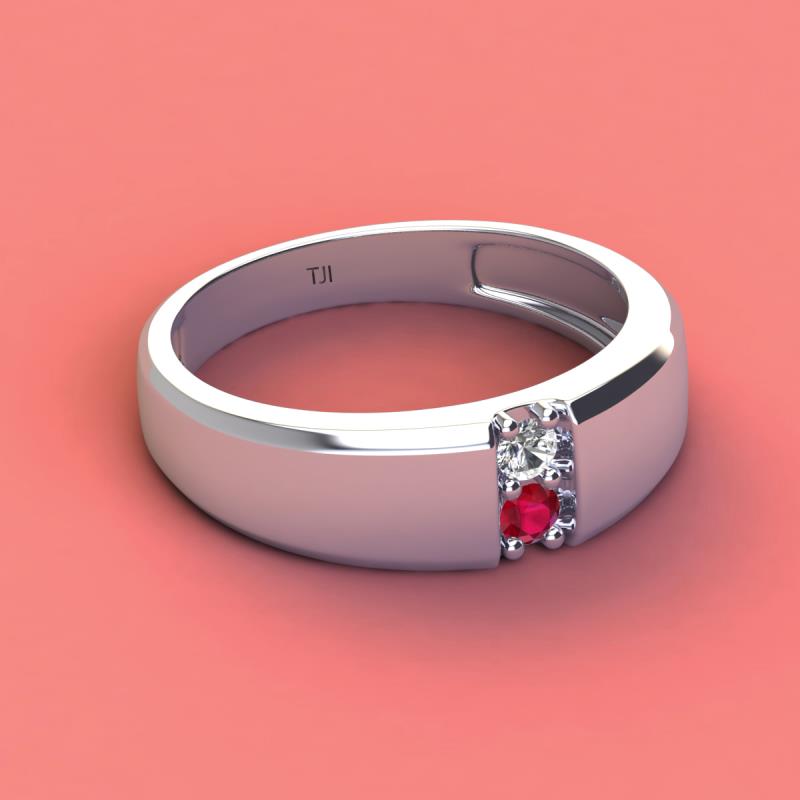Round Natural Diamond and Ruby 0.21 ctw High Polished 2 Stone Men Wedding Band 14K White Gold More Details ...