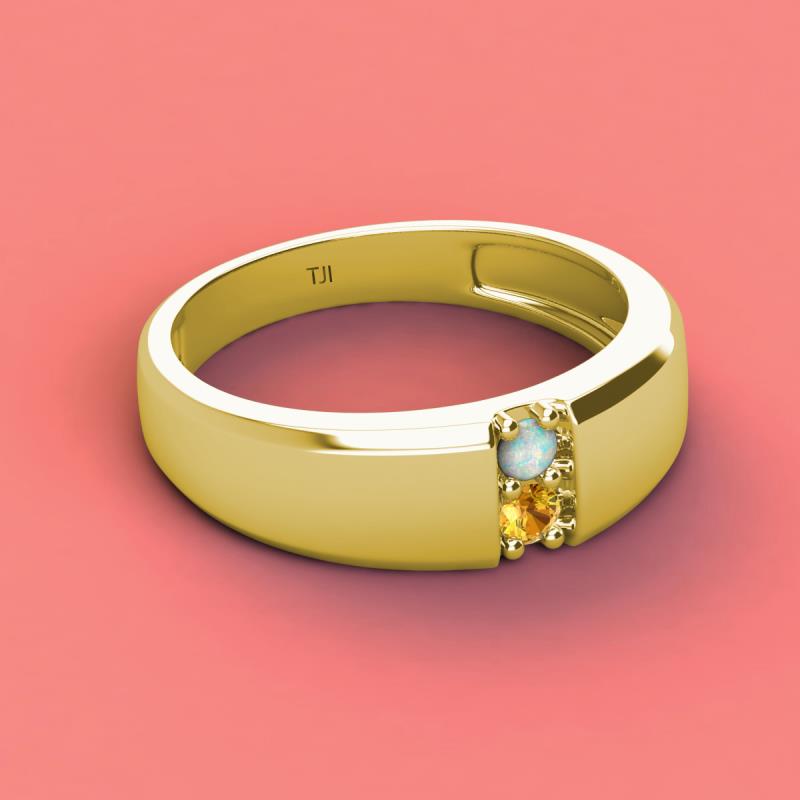 Round Opal and Citrine 0.14 ctw High Polished 2 Stone Men Wedding Band 14K Yellow Gold More Details ...
